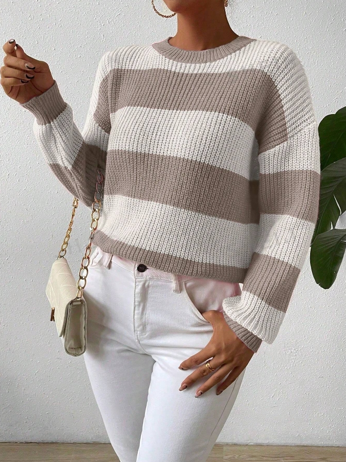 Ein moderner Klassiker für kühle Tage: Diesergestreifte Strickpulloverüberzeugt mit seinem weichen, strukturierten Maschenmuster und einem schmeichelndenV-Ausschnitt. Dieweiten Ärmelund daslässige Oversized-Designsorgen für einen entspannten, dennoch eleganten Look. Perfekt kombinierbar mit Jeans, Stoffhosen oder Röcken – für einen mühelos stylischen Auftritt im Alltag.